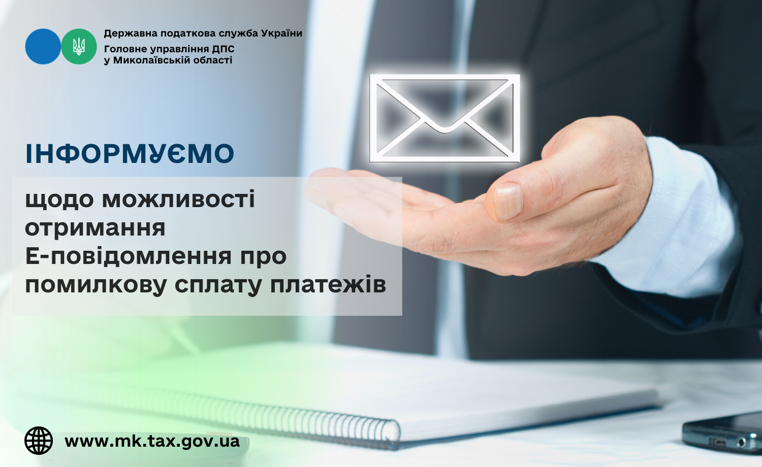 Головне управління ДПС у Миколаївській області повідомляє, що з метою підвищення рівня інформування платників податків про суми помилково сплачених податкових платежів, єдиного внеску в Електронному кабінеті платника (далі – Електронний кабінет) розроблено та впроваджено новий сервіс «Е-повідомлення».