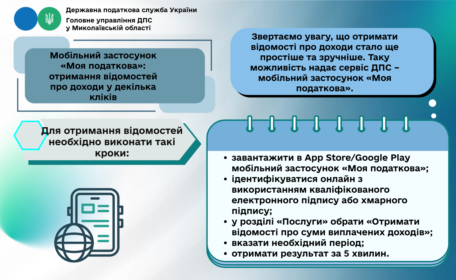 Звертаємо увагу, що отримати відомості про доходи стало ще простіше та зручніше. Таку можливість надає сервіс ДПС – мобільний застосунок «Моя податкова».