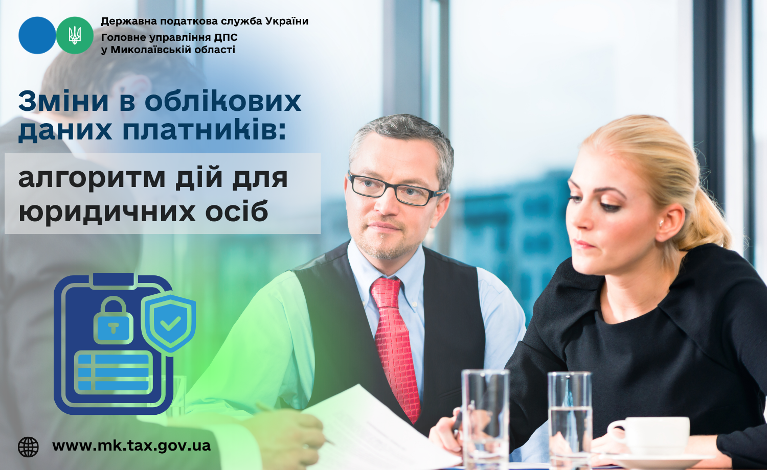 Головне управління ДПС у Миколаївській області звертає увагу, що відповідно до п. 66.1 ст. 66 Податкового кодексу України від 02 грудня 2010 року № 2755-VI (далі – Кодекс) підставами для внесення змін до облікових даних платників податків є, зокрема: