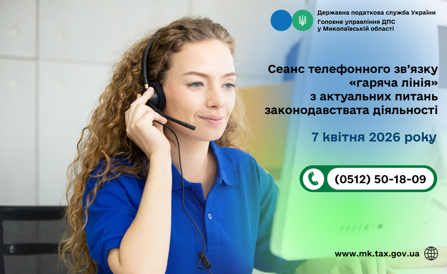 Головне управління ДПС у Миколаївській області проводить з 10 год. 00 хв. до 11 год. 00 хв. 07 квітня 2026 року сеанс телефонного зв’язку «гаряча лінія» з актуальних питань законодавства та діяльності