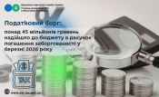 Податковий борг: понад 45 мільйонів гривень надійшло до бюджету в рахунок погашення заборгованості у березні 2026 року