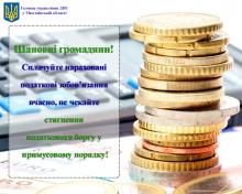 Шановні громадяни! Сплачуйте нараховані податкові зобов’язання вчасно, не чекайте стягнення податкового боргу у примусовому порядку!