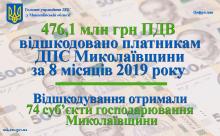 ДПС Миколаївщини: за 8 місяців 2019 року платникам відшкодовано 476,1 млн грн ПДВ