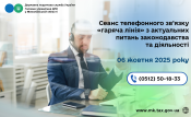 Головне управління ДПС у Миколаївській області проводить з 10 год. 00 хв. до 11 год. 00 хв. 06 жовтня 2025 року сеанс телефонного зв’язку «гаряча лінія» з актуальних питань законодавства та діяльності