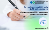 У січні – вересні 2025 року до Головного управління ДПС у Миколаївській області надійшло 238 письмових звернень громадян.