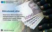 Очільник податкової служби Миколаївщини зазначив, що платники податків Миколаївщини активно підтримують Збройні Сили України, сумлінно та прозоро сплачуючи військовий збір. А стабільне надходження до бюджету військового збору свідчить про ефективність вжитих заходів з детінізації доходів, зокрема, щодо легалізації заробітної плати, а також про відповідальність та патріотизм платників податків, які сумлінно виконують свій конституційний обов’язок щодо сплати податків до бюджету, у т.ч. і військового збору.