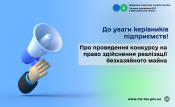 До уваги керівників підприємств! Про проведення конкурсу на право здійснення реалізації безхазяйного майна