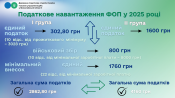 Нагадуємо платникам податків про податкове навантаження у 2025 році для фізичних осіб – підприємців 1-4 груп та ФОП на загальній системі оподаткування.