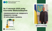 За 11 місяців 2025 року платники Миколаївщини перерахували до зведеного бюджету понад 25 мільярдів гривень
